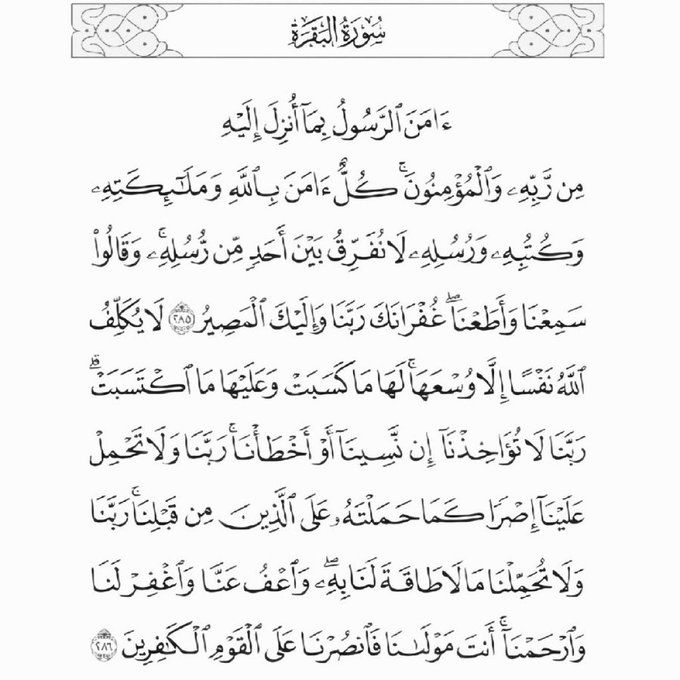 في هذه المقالة آخر آيتين من سورة البقرة مكتوبة وبالصور