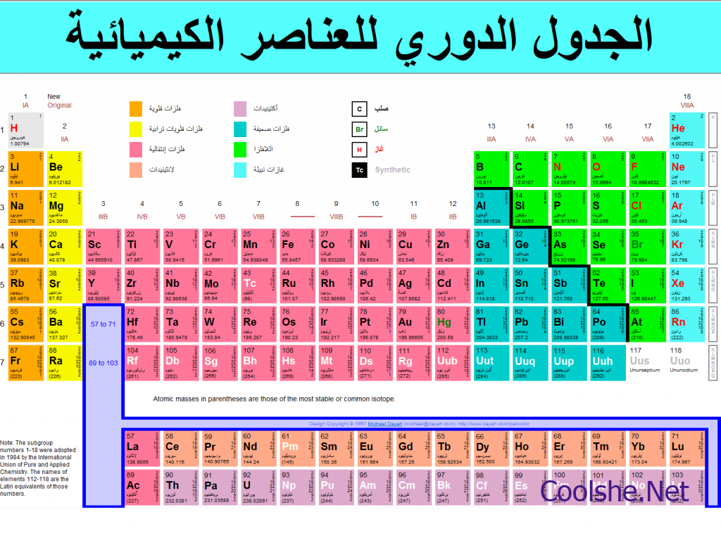 العناصر في الجدول الدوري تترتب حسب أعدادها الكتلية